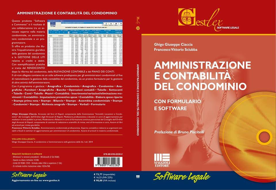 Napoli, 27 gennaio 2015_Un manuale da non perdere, una preziosa guida per gli Amministratori di Condominio. Il libro “Amministrazione e Contabilità del Condominio” – Maggioli Editore – nasce dalla collaborazione del dott. Francesco Vittorio Sciubba – Amministratore Professionista di Napoli e Presidente Anap della Regione Campania e Ghigo Giuseppe Ciaccia, avvocato del Foro partenopeo e Direttore Scientifico del Centro Studi Anap Campania. Il libro in uscita nelle prossime ore affronta le maggiori tematiche amministrative e contabili del Condominio mettendo a disposizione degli operatori del settore un Software operativo ed un pratico Formulario per la gestione delle più importanti attività dell’amministratore. Questo lavoro illustra l’inquadramento giuridico della gestione economico-finanziaria del condominio e delle liti relative a crediti e debiti. Il volume è il frutto di un’amicizia e di una passione “il Condominio” tra un avvocato esperto nella materia condominiale, un amministratore professionista esperto contabile ed un programmatore di software gestionali.